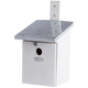 Assortiment: naar links en naar rechts kijkende zwarte vogel. Deze nestkast is geschikt voor de koolmees. Behalve de koolmees kunt u ook de pimpelmees, de ringmus en de bonte vliegenvanger in deze kast verwachten. In de winter bewijst de kast vaak goede diensten voor de vogels om te schuilen tegen het barre weer.