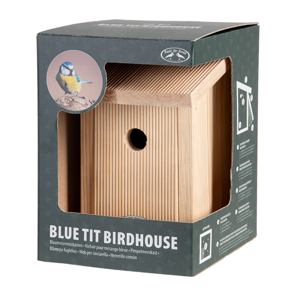 Deze nestkast is geschikt voor de pimpelmees Behalve de pimpelmees kunnen de volgende vogels ook gebruik maken van de nestkast: de kuifmees, de glanskop, de matkop en de zwarte mees. In de winter wordt het vogelhuis vaak door de vogels gebruikt als schuilplaats. Deze nestkast wordt geleverd in een full colour geschenkverpakking. 18mm dikke wanden die zorgen voor perfecte isolatie Schuin dak waardoor het water gemakkelijk wegloopt Overhangend dak beschermt tegen wind en regen Scharnierende voorzijde waardoor de nestkast gemakkelijk is schoon te maken Ventilatiegaten om oververhitting te voorkomen Vier drainagegaten in de bodem Geruwde binnenzijde en groeven in de voorzijde zodat de jonge vogels gemakkelijk uit de kast kunnen klimmen Zijwanden omsluiten de bodem ter voorkoming van wateroverlast L 19,9 x B 18,5 x H 26