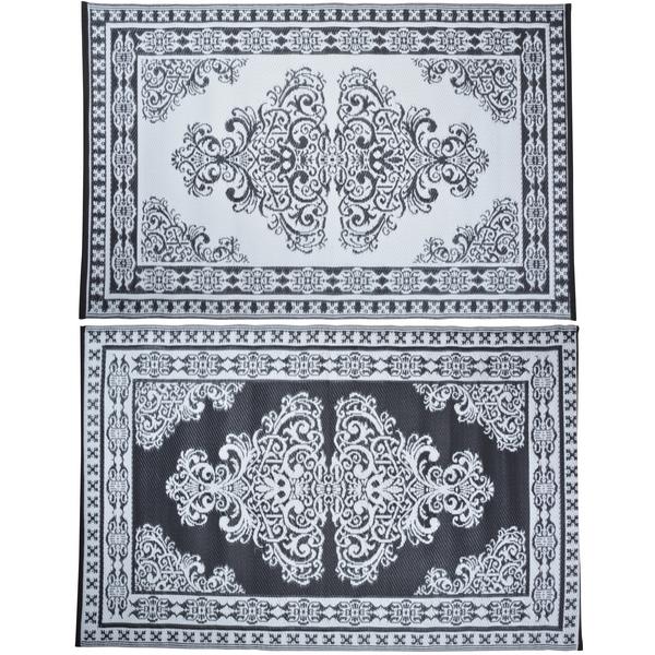 Tuintapijt Perzisch tapijt decoratie . Multifunctioneel kunststof vloer/tuinkleed in zwart/wit print. Erg praktisch en leuk voor in de kinderkamer, terras of op het balkon! Formaat 119.5 x 1.86 meter en 0.3 cm dik