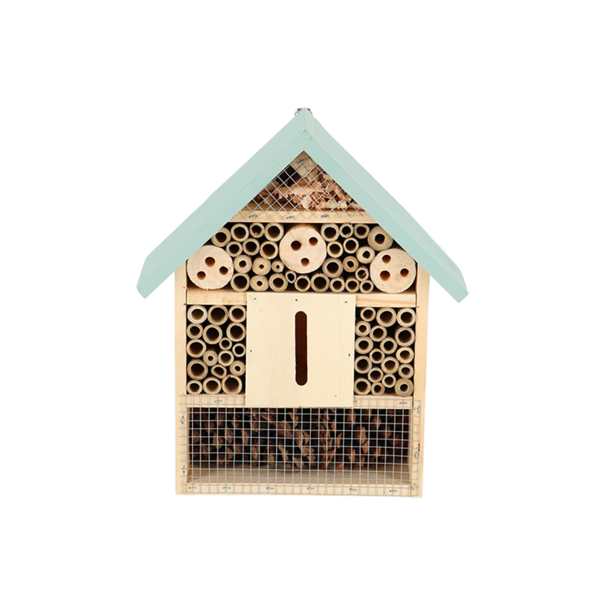 Insecten vervullen veel belangrijke taken in tuinen. Zij bestuiven planten en fungeren als natuurlijke ongediertebestrijder. Dit huis biedt solitaire bijen, vlinders en andere insecten een nest - en overwintersmogelijkheid.