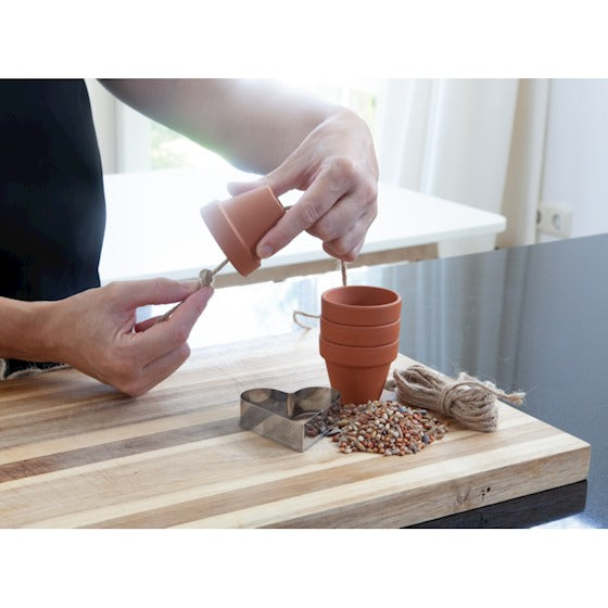 Met deze set kun je voederklokjes en andere voederhulpjes voor onze inheemse wilde vogels maken.Inhoud: 4 terracotta potjes, 150 gram vogelvoer, 150 gram rundervet, 4 meter lange koord en knutselinstructie.