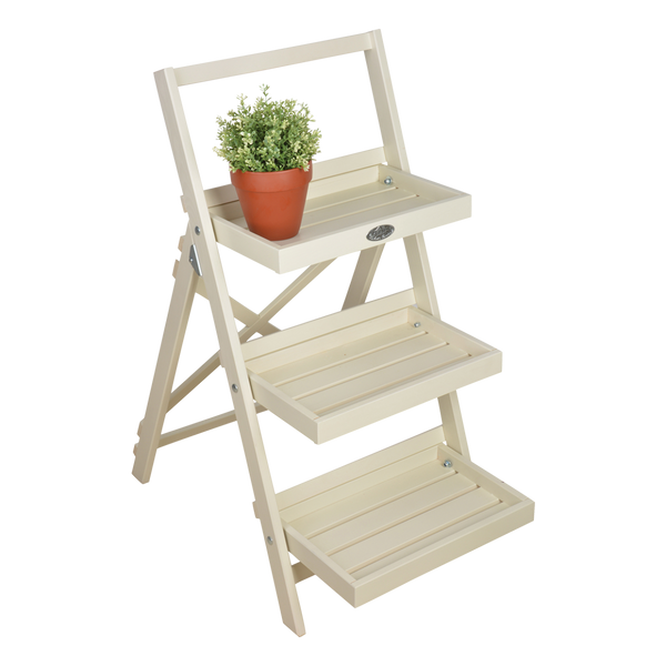 Robuuste simpele houten meubels en accessoires vormden jarenlang de entourage in de keuken en het leefgedeelte op boerderijen. Het kwalitatief hoogstaande hout zorgt voor een mooie afwerking en stabiliteit. Deze bloementrap voegt niet alleen veel sfeer toe, maar is ook zonder bloemen of planten een prachtig tuinaccessoire. De drie treden bieden voldoende ruimte om van bijvoorbeeld een kale muur een groene oase te scheppen. Een echte blikvanger voor iedere tuin of terras.