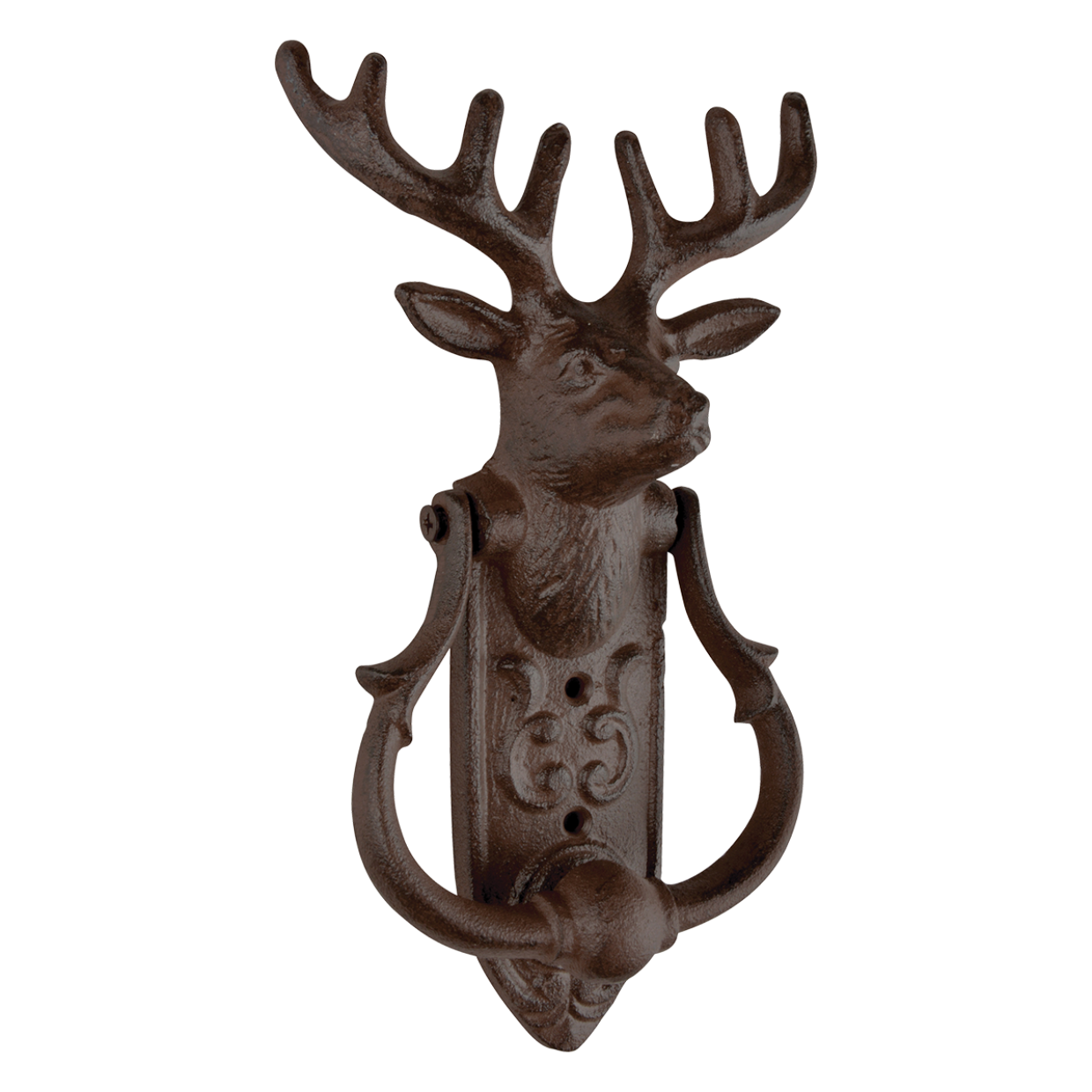 Hang de traditionele gietijzeren deurklopper met decoratieve hertenkop naast de voor- of achterdeur zodat de gasten van zich kunnen laten horen als ze willen binnentreden. Deze rustieke gietijzeren deurklopper is met de hand gegoten volgens eeuwenoud vakmanschap en traditie.