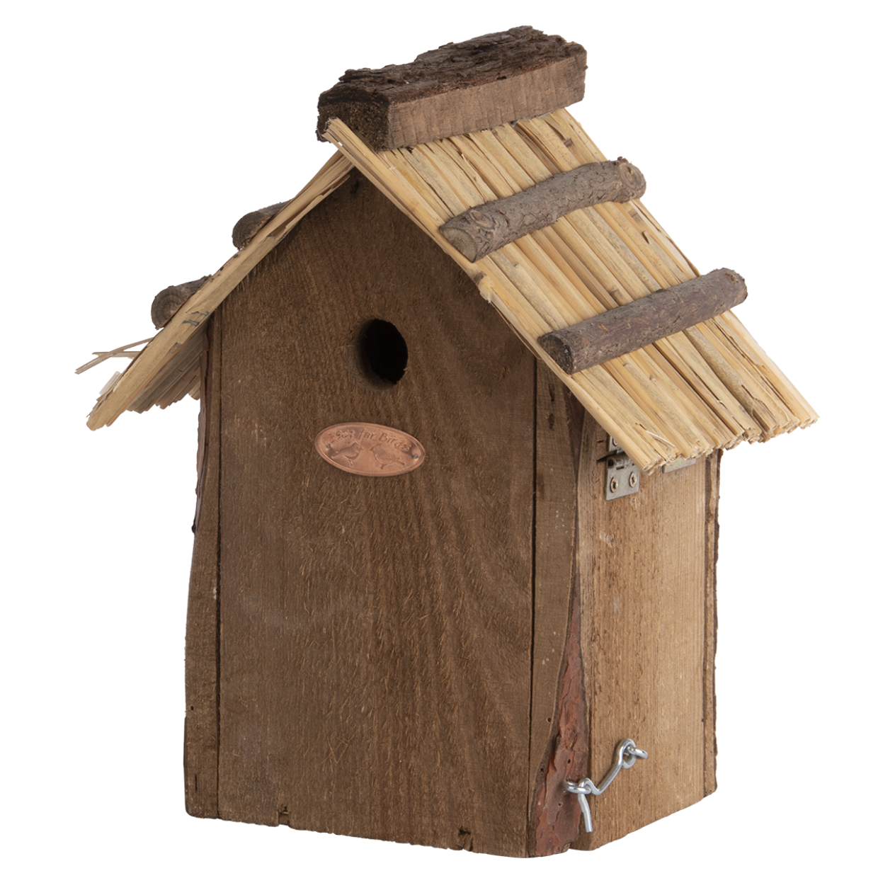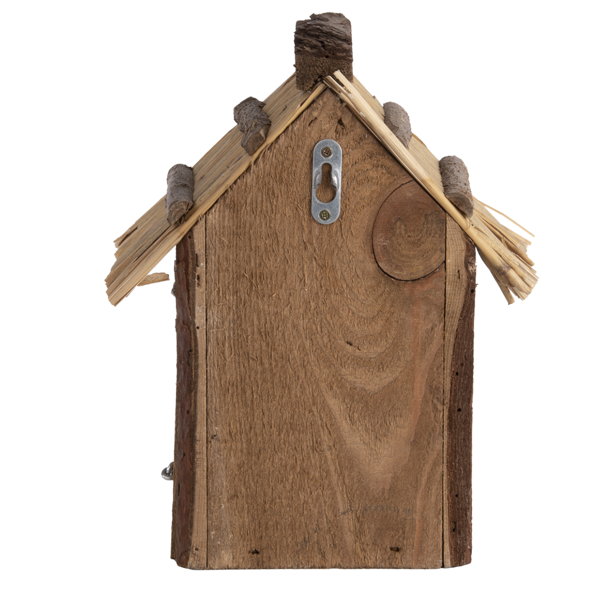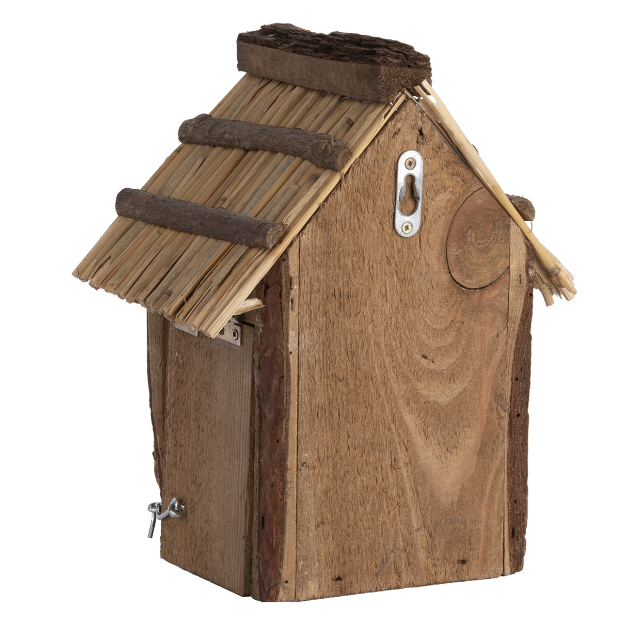 In deze fraaie bruine nestkast zullen in het bijzonder de pimpelmees, zwarte mees, kuifmees en matkop zich thuis voelen. Tips: Op minimaal 1,8 m van de grond af ophangen en minimaal 10 meter van eenzelfde soort nestkast ophangen. Niet in volle zon ophangen en bij voorkeur aan noordzijde van een boom ivm regen. Nestkast in de herfst met warm water en borstel schoonmaken ivm mogelijke parasieten.