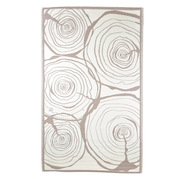 Dit rechthoekige tuintapijt met jaarringen is een mooie toevoeging aan de tuin of het terras. Het is zo geweven dat dit buitentuinkleed aan beide zijden te gebruiken is.
