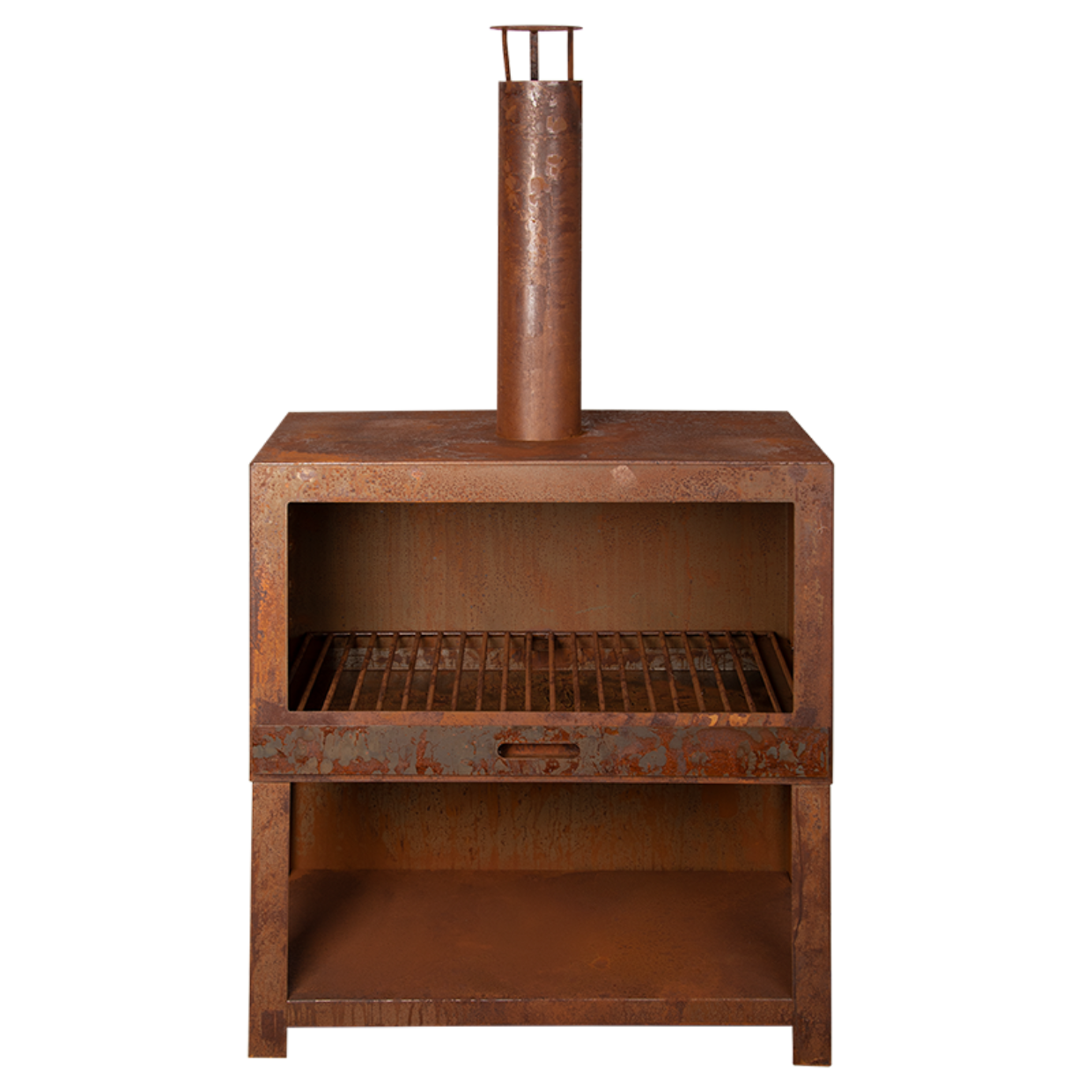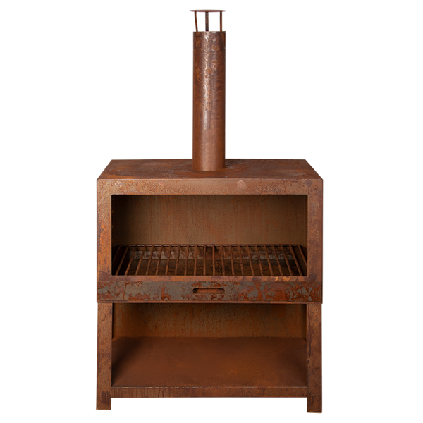 De terraskachel + houtopslag roest XL past uitstekend in iedere tuin. Deze extra grote kachel zorgt voor sfeervolle avonden rondom het vuur. De roestkleur zorgt voor een authentieke uitstraling en zal naar verloop van tijd alleen maar authentieker worden. Deze terraskachel heeft tevens een houtopslag. De grote opening aan de onderkant zorgt ervoor dat hout gemakkelijk kan worden bijgevuld. Zo heb je altijd genoeg hout bij de hand om het vuur te stoken.