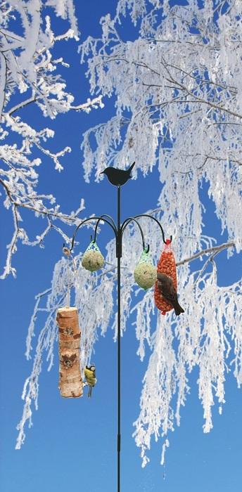 Dit voedersysteem 150cm. van Best for Birds is zeer geschikt voor tuinvogels. Het systeem bestaat uit een groen gepoedercoate metalen paal met bovenaan vier sierlijke haken en een decoratieve vogel bovenop. Door het gepoedercoate materiaal is het voedersysteem duurzaam en bestand tegen weersinvloeden. Door de handige, scherpe, pinnen aan de onderkant van het voedersysteem kunt u het voedersysteem eenvoudig in uw tuin zetten natuurlijk eveneens te gebruiken op uw terras of patio in een bloembak. De stang bestaat uit twee delen waardoor het makkelijk te verzenden en te vervoeren is, u hoeft enkel de twee delen op elkaar te klikken. Wij raden u aan het voedersysteem op een open ruimte te plaatsen welke gemakkelijk te bereiken is voor vogels.Doordat het systeem haken bevat kunt u zelf gemakkelijk vetbollen, silo's en andere vogelproducten toevoegen aan het voedersysteem. Door de combinatie van de verschillende voedermogelijkheden die u zelf kunt toevoegen trekt u vele verscheidene tuinvogels aan.Tevens creeërt u met de sierlijke vormgeving van het voedersysteem evenzeer in de winter als in de zomer een gezellige, chique, sfeer in uw tuin. Let op: wordt geleverd zonder voeders silo's / bakjes ! Gebruikersvoordelen: Weerbestendig Lange levensduur Chique uitstraling door het sierlijke ontwerp Aantrekken van verschillende tuinvogels Onderhoudsvriendelijk Meerdere voederopties mogelijk zoals vogelvoer*, water, vetproducten, cakes en hang-silo's die u zelf kunt toevoegen aan het systeem! *VogelvoerU vindt in ons assortiment een ruime keuze uit soorten vogelvoer vinden. Ook kunt u hier vogelvoer vinden wat specifiek op een vogelsoort is gericht, bijvoorbeeld de merel en het roodborstje.